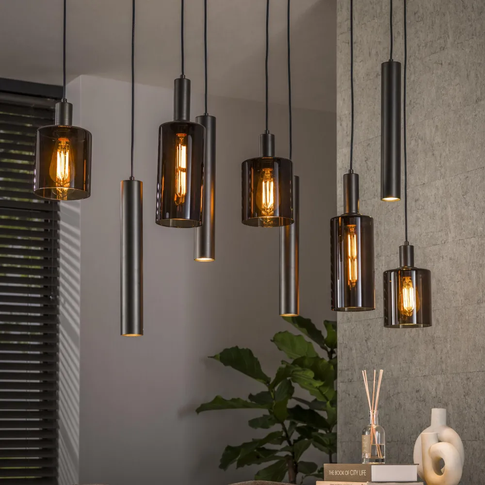 LifestyleFurn Hanglampen|Hanglamp Homer Glas en metaal, 5+4-lamps
