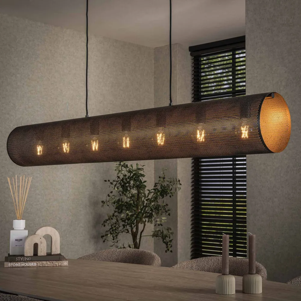 Deze hanglamp Tubon Mesh is uitgevoerd in metaal met een artic black finish. Het mesh zorgt voor een prachtige verdeling van het licht. De lamp is tot 150 cm in hoogte verstelbaar. Deze lamp heeft een grotere variant en een bijpassende vloer-en tafellamp. Een stijlvolle en tijdloze lamp!