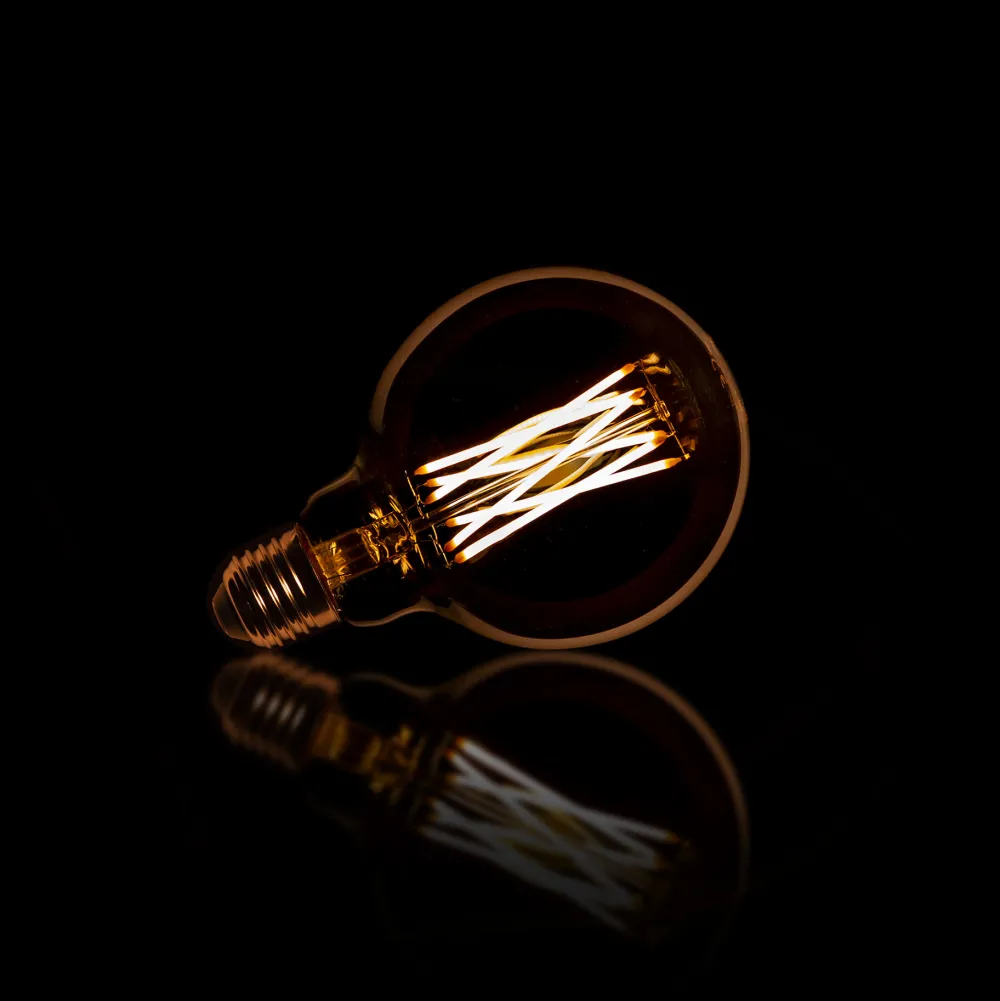 LifestyleFurn Lichtbronnen|Kooldraadlamp Bol L Ø9,5cm, LED E27 / 6W, Goldline, dimbaar Amberkleurig glas
