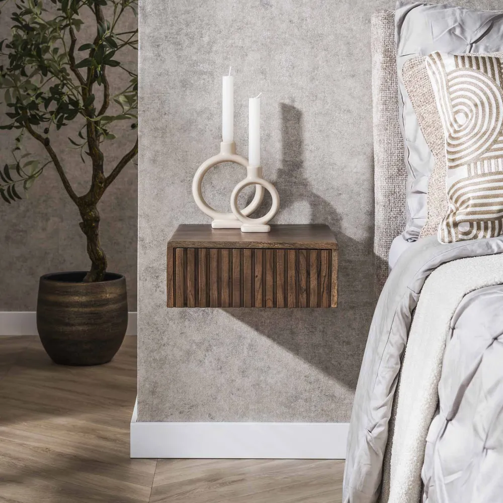 LifestyleFurn Nachtkastjes|Nachtkastjes|Zwevend Nachtkastje Alania Met 1 lade, Acaciahout Massief acacia bruin