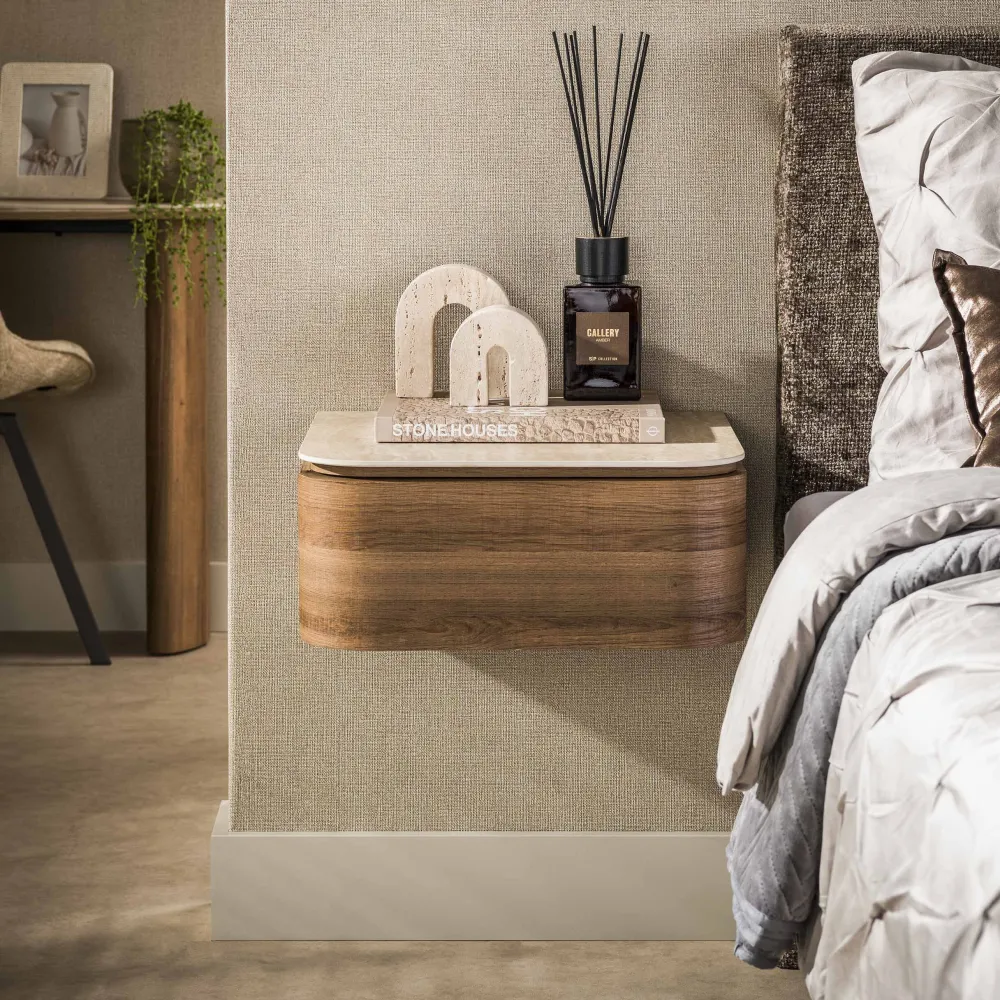 LifestyleFurn Nachtkastjes|Nachtkastjes|Zwevend Nachtkastje Nikka Eikenlook en travertinlook, Met 1 lade
