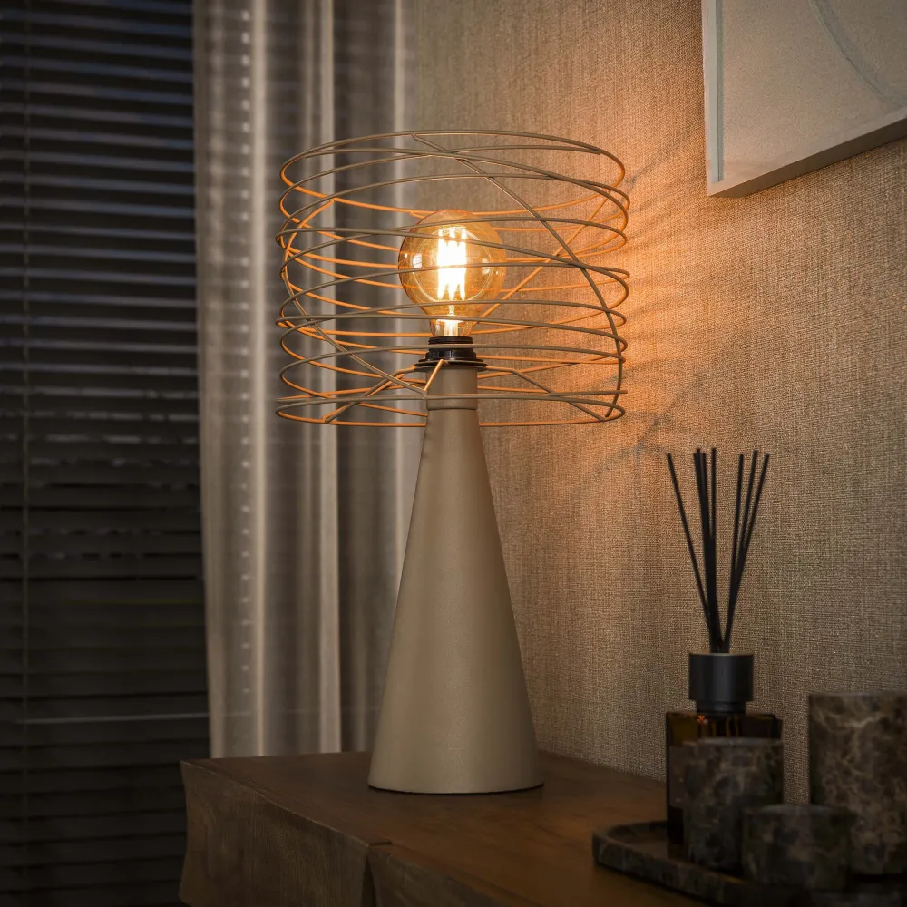 Merk:LifestyleFurnMateriaal:Metaal in een beige finishBreedte:30cmHoogte:53cmDiepte:30cmType fitting:E27Dimbaar:Ja, deze…