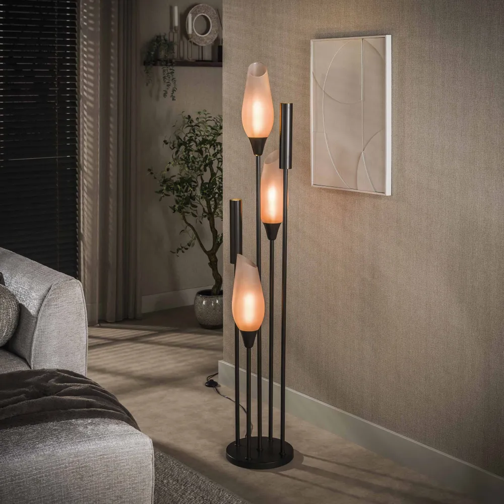 LifestyleFurn Vloerlampen|Vloerlamp Luvia Frosted Glas, 5-lamps, kleur Sienna Bruin