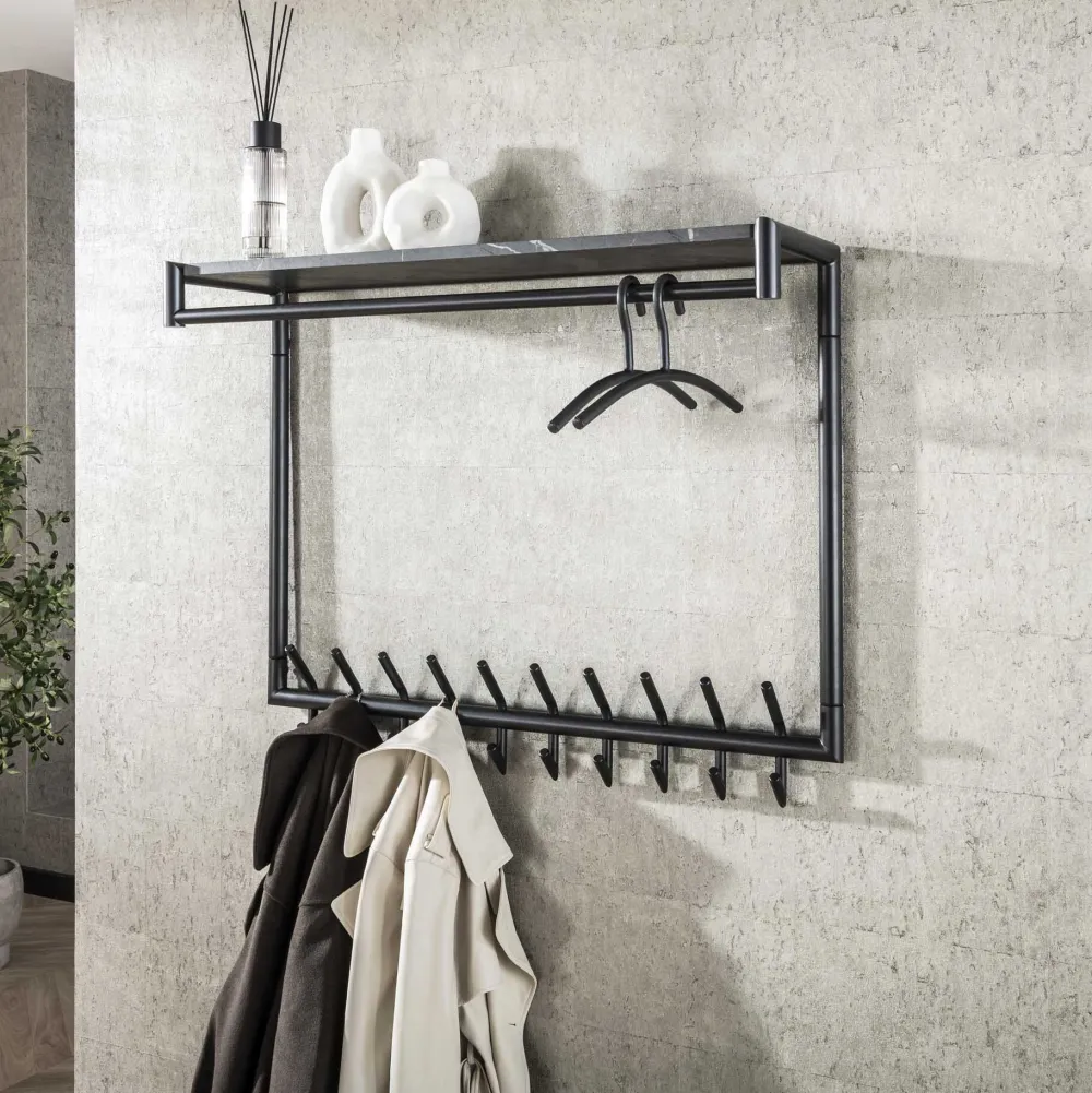 LifestyleFurn Wandkapstokken|Kapstok Letica Met 20 haken en keramieklook plank 3D zwart bruin