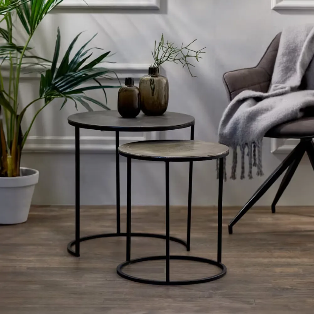 Light & Living Bijzettafels Set|Ronde Bijzettafel|Bijzettafel Talca Set van 2 stuks, 40/49cm, kleur Antiek Lood