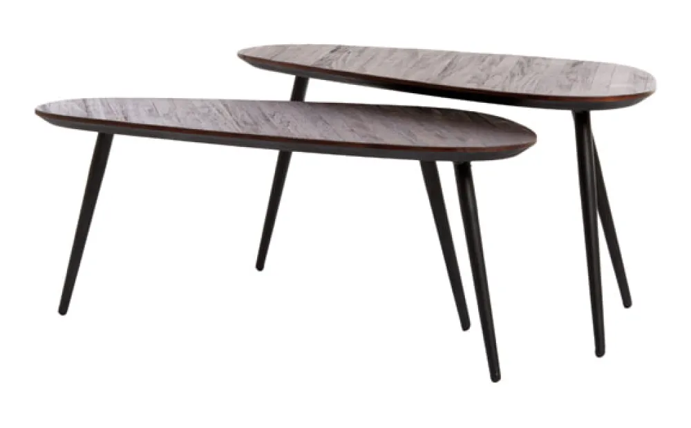 Light & Living Salontafel Set|Organische Salontafel|Salontafel Viejo Hout en metaal, Set van 2 stuks Donker hout