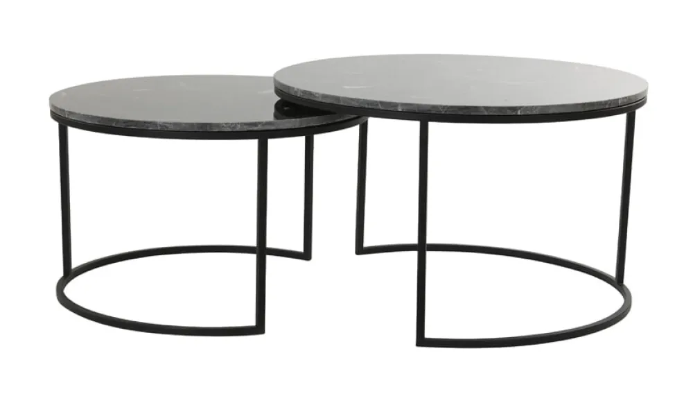 Light & Living Salontafel Set|Ronde Salontafel|Salontafel Alfio Set van 2 stuks, bruin marmer+zwart