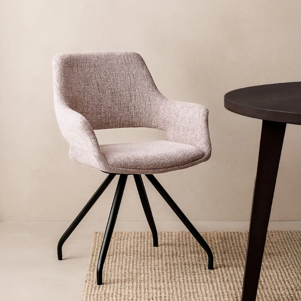 Livingfurn Beige Eetkamerstoelen|Draaibare Eetkamerstoelen|Draaibare Eetkamerstoel Capp Geweven stof