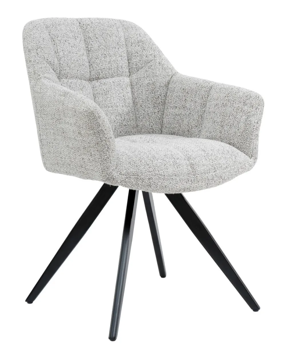 Eetkamerstoel Tommy combineert luxe en comfort met een stijlvolle uitstraling. De ruime kuip met rijke vulling biedt ultiem zitgemak, terwijl de 180 graden draaifunctie zorgt voor een gemakkelijk in- en uitstap. De slanke, zwarte poten geven de stoel een moderne en elegante touch. Perfect voor wie op zoek is naar een verfijnde toevoeging aan de eetkamer!