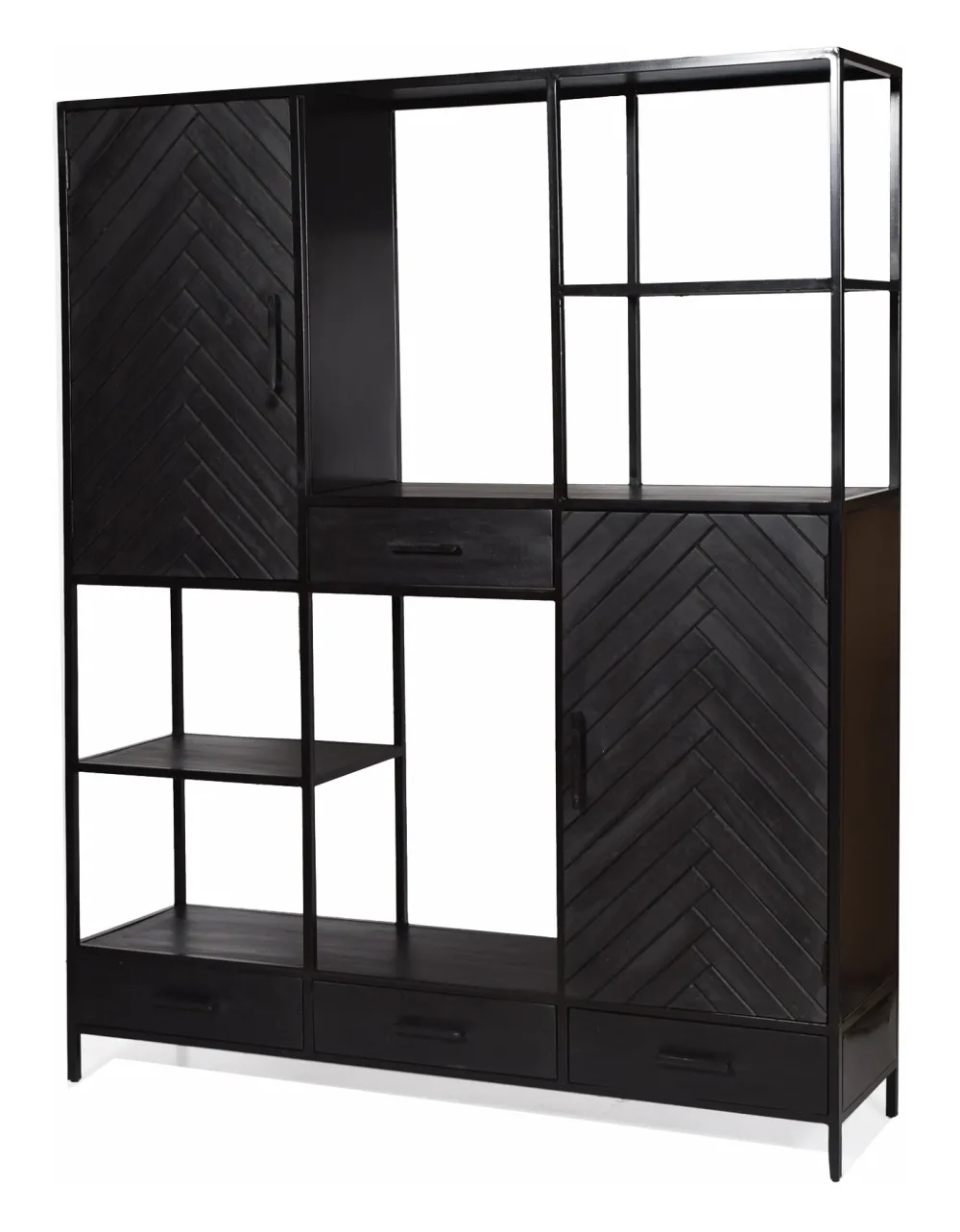 Ontdek de charme van de kasten uit de York Collectie van Livingfurn, een stijlvolle eyecatcher voor jouw woonkamer. Het zwarte mangohout vormt een prachtig contrast met het visgraatpatroon op de deuren van het tv-meubel. Het frame, gemaakt van gecoat staal, voegt een extra vleugje chic toe aan de York meubelen, waardoor ze een verfijnde toevoeging zijn aan je interieur.