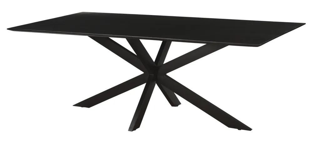 Livingfurn Rechte Eettafel|Eettafel Oslo Mangohout en staal, kleur Zwart, 220 x 100cm