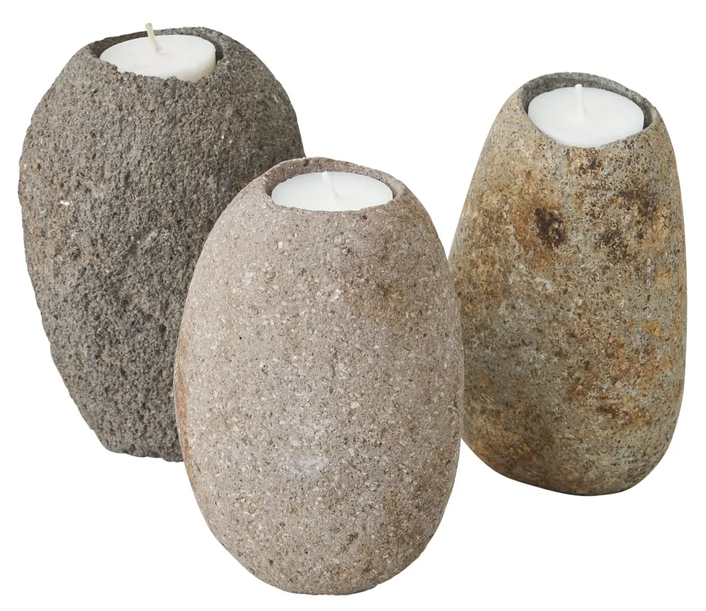 MUST Living Kaarshouders & Windlichten|Kaarshouder Riverstone Set van 3 stuks