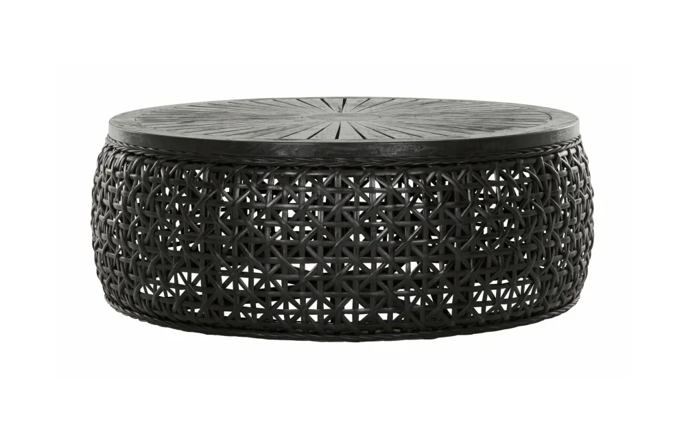 MUST Living Ronde Salontafel|Salontafel Rimini Rotan en hout, 100cm, kleur Zwart