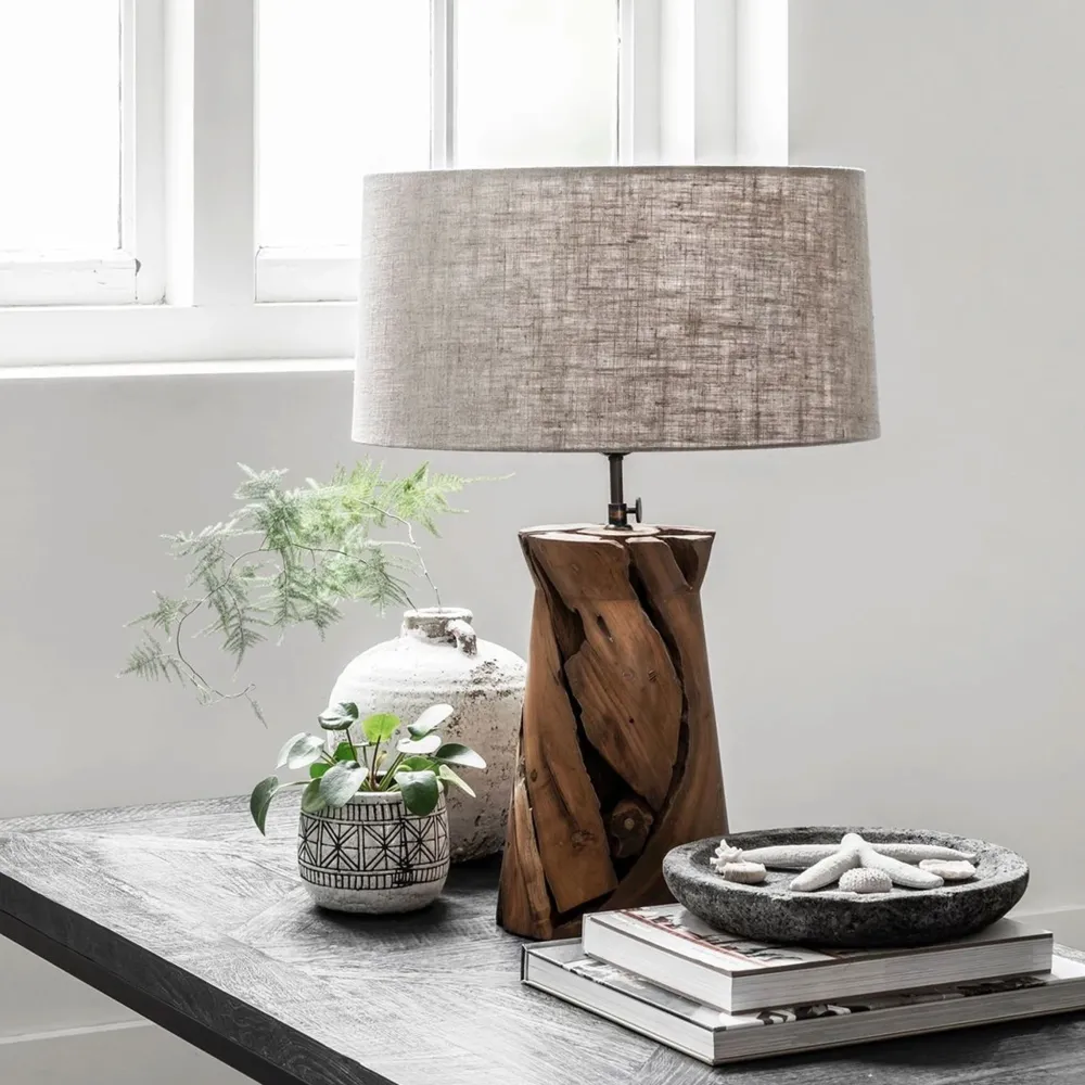 Tafellamp Jungle Naturel small van het Nederlandse lifestyle merk MUST Living heeft een lampenvoet gemaakt van teakhout. Door de vormen van het teakhout is elke lampenvoet uniek. Tafellamp Jungle Naturel is ook verkrijgbaar in een groter formaat.