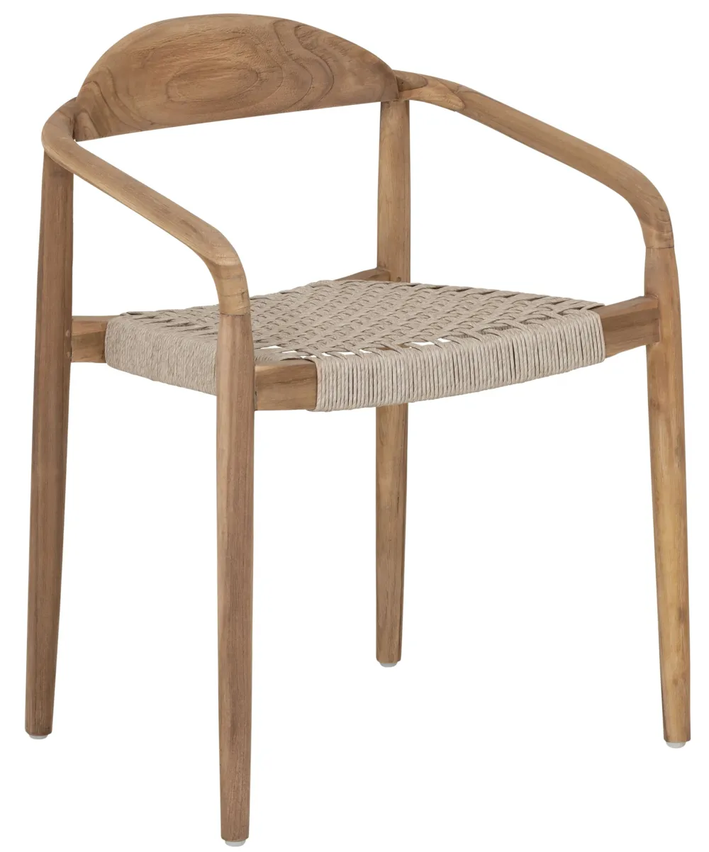 MUST Living Terrasstoelen|Beige Eetkamerstoelen|Eetkamerstoel Santiago Teakhout en touw