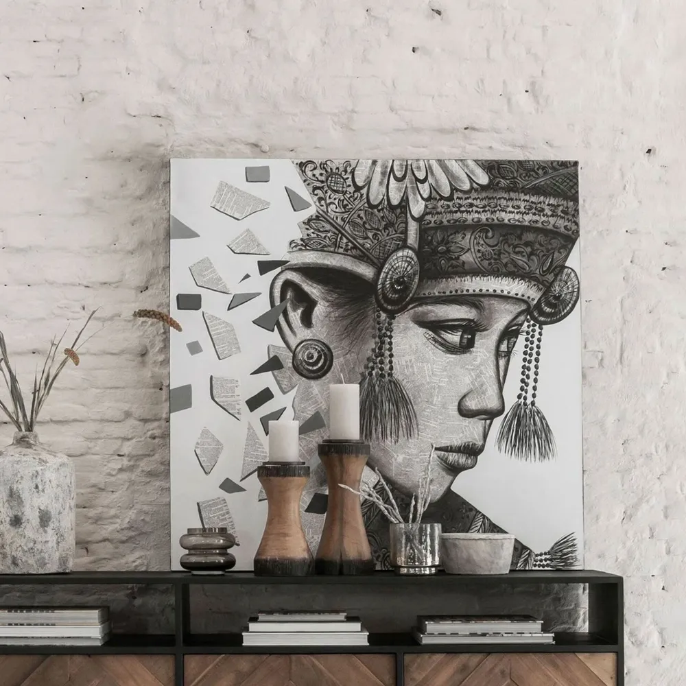 MUST Living Wandpanelen|Wandpaneel Balinese girl Ketut 100 x 100cm Zwart, Wit