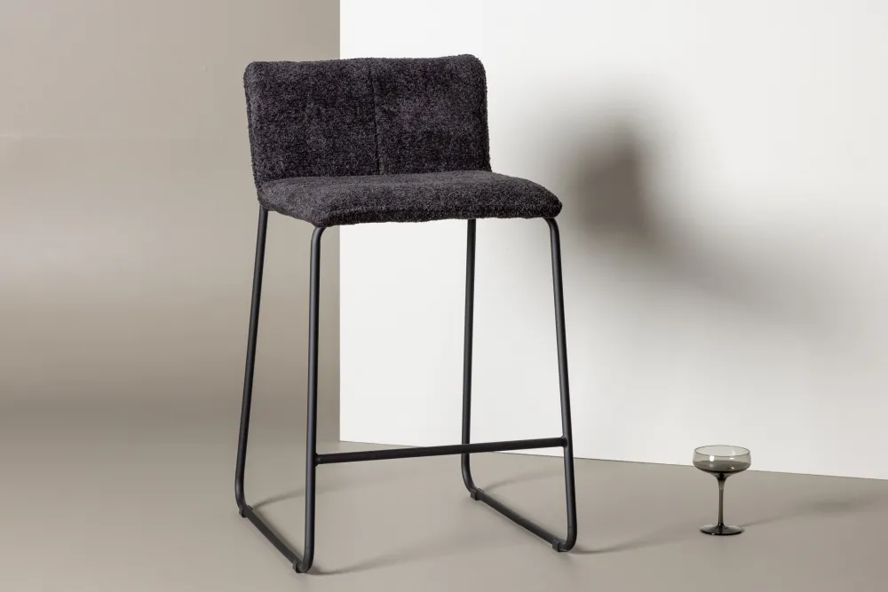 Sheridan – de barkruk die op de trendlijsten klimt! Deze smakelijke barkruk in Scandinavisch design behoort tot de Nohr collectie en zal zeker een uitnodigende blikvanger in je huis zijn. Met een mooie zitting van gestoffeerde, donkergrijze stof van microvezel en geïntegreerde voetsteun van zwart staal is deze barkruk even stijlvol als comfortabel om in te zitten. Zet hem rond de hoge eettafel of aan de bar in de keuken en breid samen gezellige momenten uit!