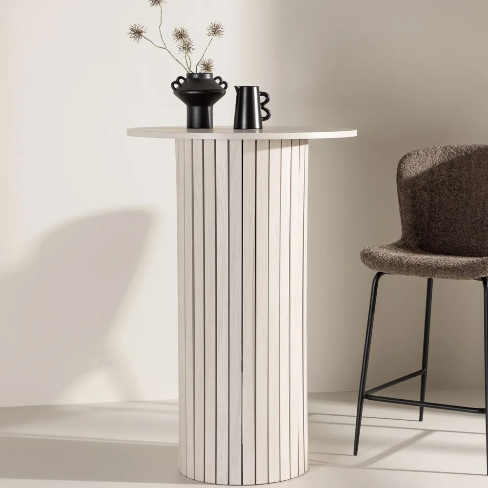 De bartafel Adrin heeft een witgekalkte kleur die een tijdloze en frisse uitstraling geeft aan je inrichting. Gemaakt van MDF-materiaal biedt deze tafel zowel stijl als kwaliteit voor dagelijks gebruik.