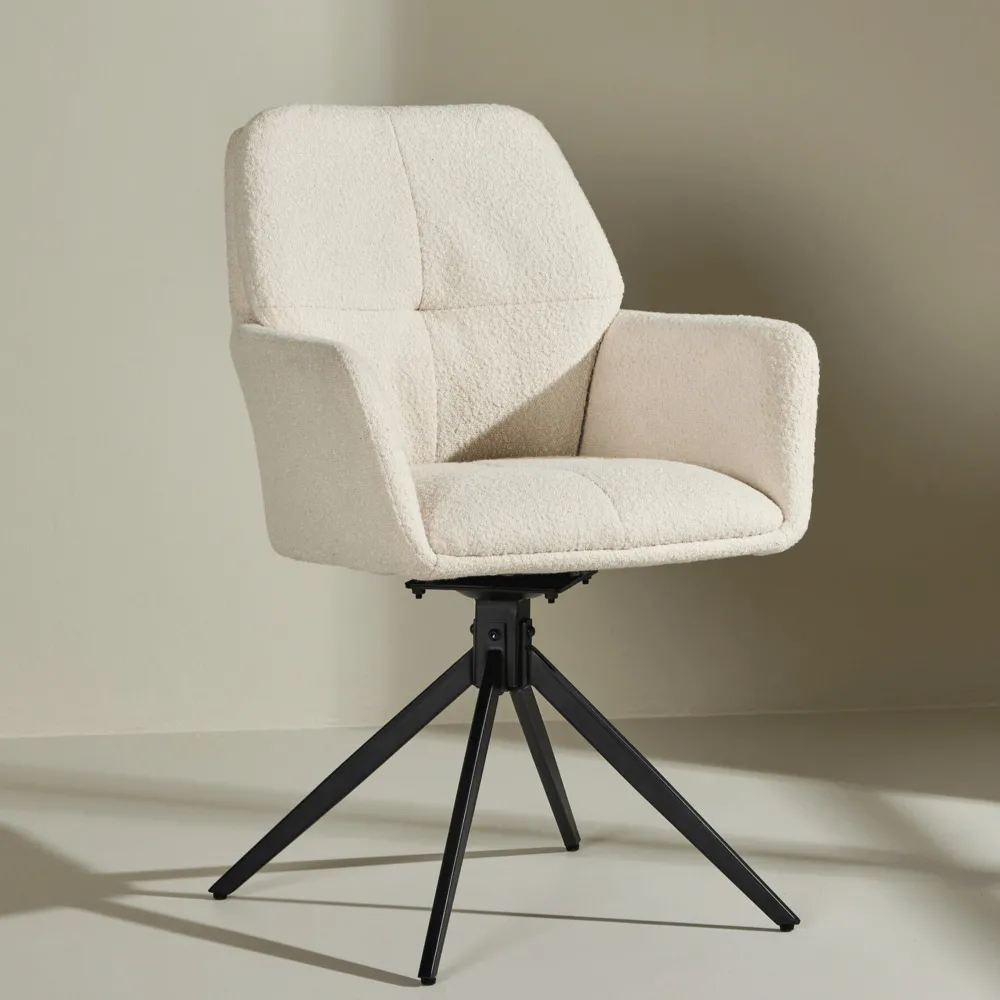 Nohr Eetkamerstoelen Bouclé / Teddy|Draaibare Eetkamerstoelen|Draaibare Eetkamerstoel Montie Bouclé, kleur Off White