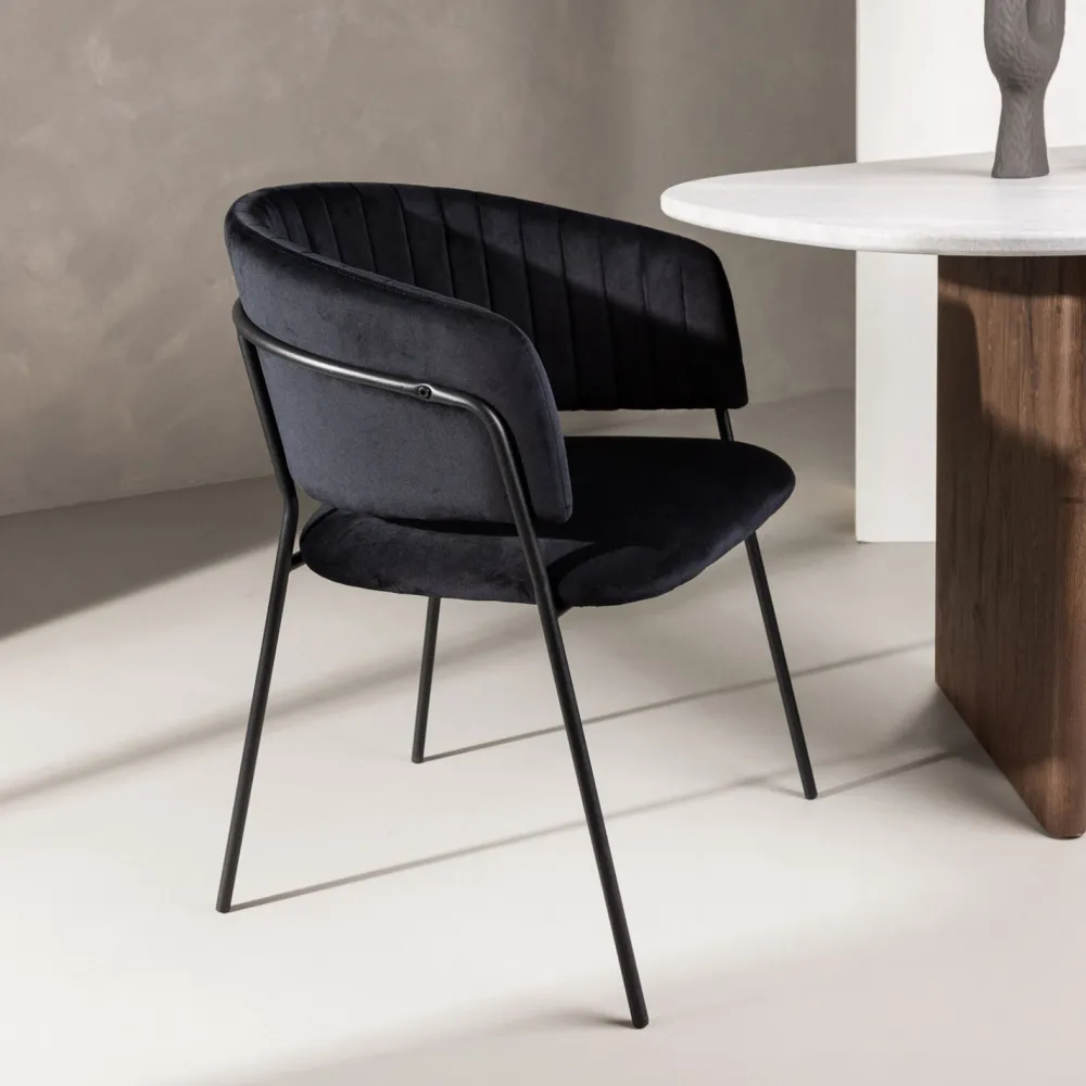 Nohr Eetkamerstoelen Velvet / Fluweel|Eetkamerstoelen Met Armleuning|Eetkamerstoel Tiffannie Velvet, kleur Zwart