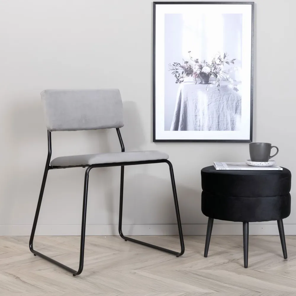 Creëer een charmant middelpunt in het hart van je huis met strakke eetkamerstoelen uit de Octavius serie! Het minimalistische, moderne ontwerp brengt een luchtig gevoel in de woonkamer of keuken. De stoel heeft een rugleuning en zitting van lichtgrijs fluweel en polyestermix, met decoratief slanke stoelpoten van zwart ijzer. Enige montage vereist. Maak compleet met een bijpassende tafel en geniet samen van gezellige maaltijden.