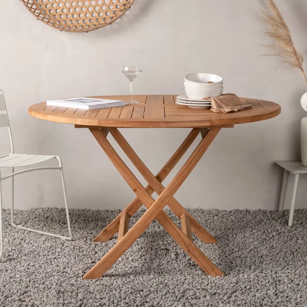 Nohr Eettafels Voor In Je Tuin|Ronde Tuintafel Amberia Teakhout, 120cm Naturel