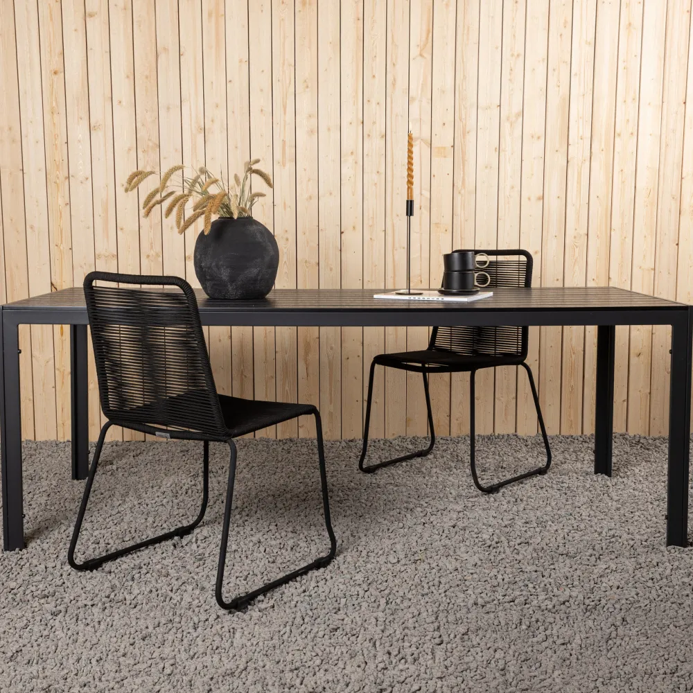 Eenvoudige en stijlvolle eettafel in tijdloze zwarte kleur met een multiplex tafelblad en aluminium onderstel. Erikka is een flexibele eettafel die net zo goed in de buitenruimte als op het balkon past. Geef het meubel een persoonlijk tintje door het te matchen met een paar heerlijke eetkamerstoelen in jouw smaak. Nodig deze zomer uit tot heerlijke diners!