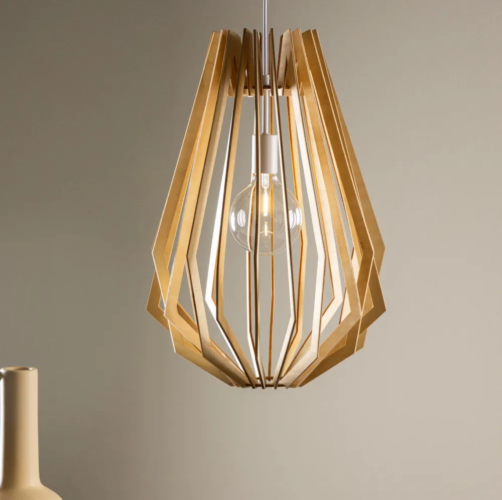 Markale plafondlamp in hout! Een tijdloze lamp van natuurlijk materiaal die het huis een zachte uitstraling geeft met een aangename verlichting. Werkt perfect boven de eettafel of salontafel en geeft warmte aan de kamer!