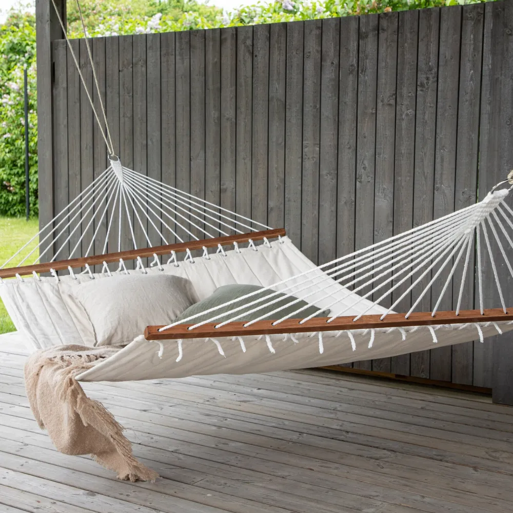 Je beste vriend deze zomer! Een moderne, duurzame en opvallende hangmat in een aangename crèmekleurige tint. De dubbelh…