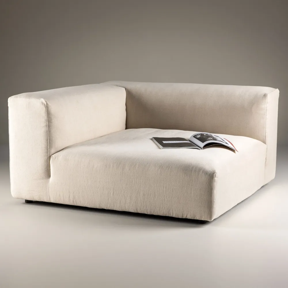 Ontdek nieuwe mogelijkheden voor je interieur met de modulaire sofa Page! Door eenvoudig meer modules toe te voegen, kun je de grootte aanpassen aan je ruimte en behoeften, waardoor je de vrijheid hebt om je droombank te creëren. Het hoekstuk van de modulaire bank biedt niet alleen een bank, maar ook de mogelijkheid om een unieke en persoonlijke sfeer in je huis te creëren waarbij design en functionaliteit hand in hand gaan. Met een modern ontwerp en een zachte, beige stoffen bekleding gemaakt van een harmonieuze mix van katoen en linnen, straalt de bank een strakke en eigentijdse esthetiek uit die naadloos past in elke kamer. De stevige houten constructie zorgt niet alleen voor stabiliteit, maar ook voor duurzaamheid die lang meegaat.