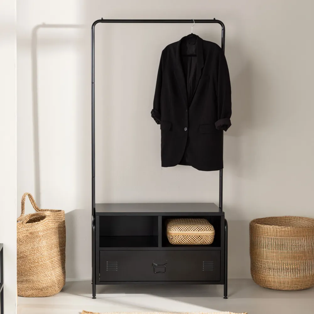 Creëer orde en netheid in je kledingkast met stijl! Ons zwart stalen kledingrek uit de Chemeka serie is de perfecte aanvulling op je kleding en schoenen. Hier krijg je een prachtige opbergoplossing die overal geplaatst kan worden.