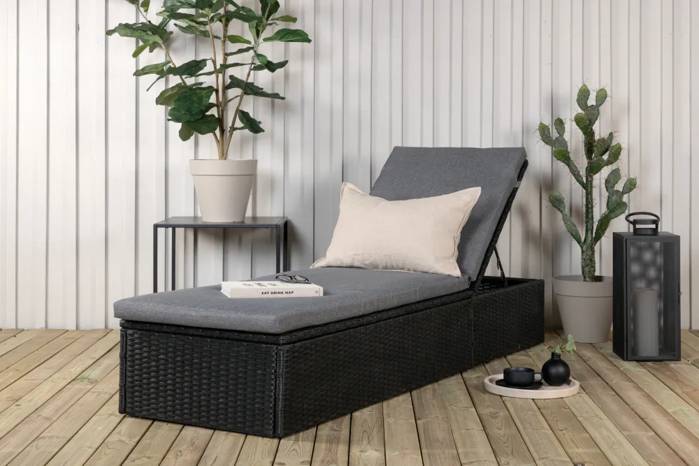 Creëer deze zomer een luxe oase op je terras met het zonnebed Valari! Het ontwerp is goed doordacht met een stijlvolle uitstraling en praktische functies. Hier krijg je een zwart gekleurd ligbed van kunstrotan met grijs kussen en verstelbare rugleuning. Kies of je rechtop wilt zitten en een boek wilt lezen of ga lekker languit liggen en geniet van de warmte van de zon.