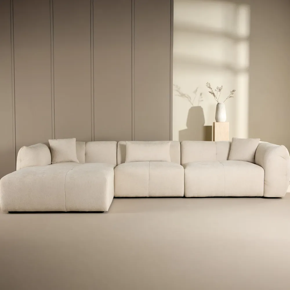 Ontdek de Shenicka loungebank van Nohr: een elegante bank die comfort en stijl naadloos combineert. Uitgevoerd in een neutrale beige kleur en bekleed met zachte chenille stof, voelt deze bank heerlijk zacht aan en nodigt uit om in te ontspannen.