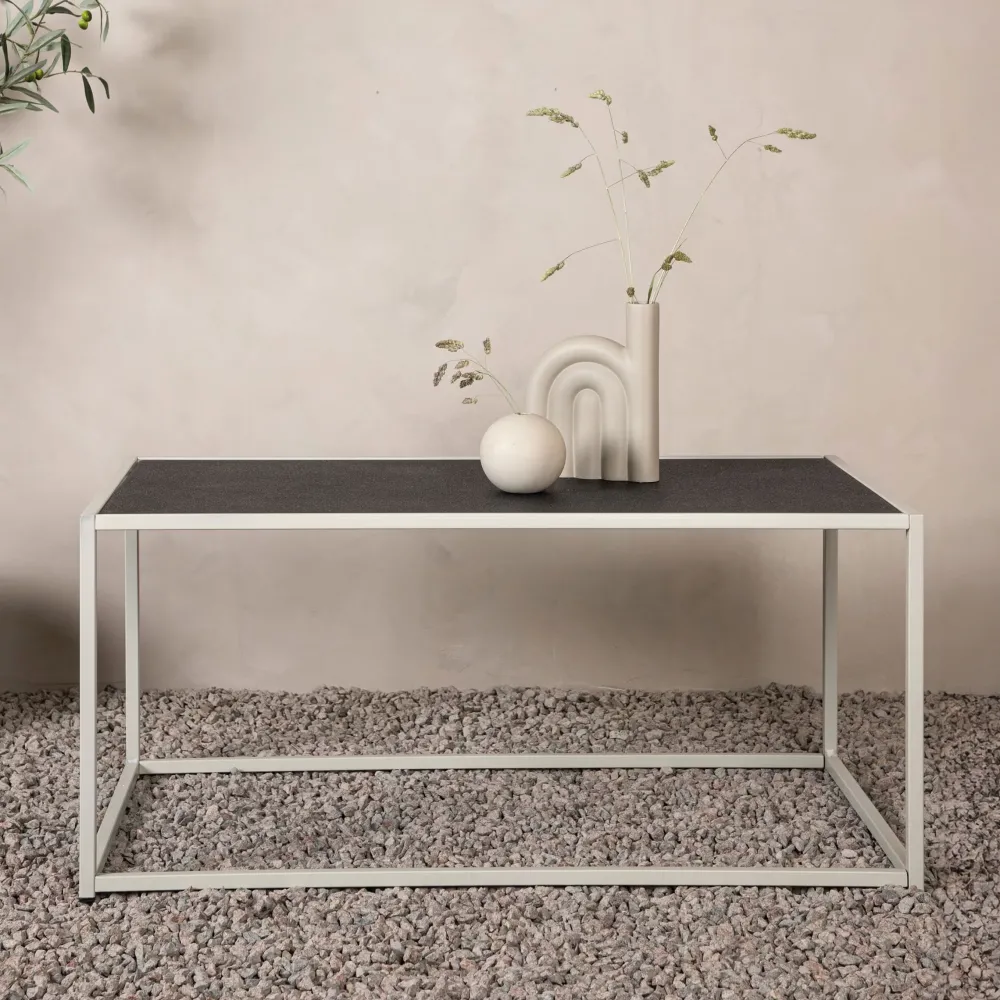 Serrina is onze stijlvolle salontafel in minimalistisch design! De tafel heeft rechte Scandinavische vormen die een luchtig en modern gevoel geven aan de kamer. Gemaakt met een smalle frameconstructie van wit staal en een bovenblad in een mooie donkergrijze kleur. Decoreer met mooie decoraties en lampjes om een prettig gevoel te creëren bij de bankgroep. Deze salontafel is helemaal in lijn met de trends met strakke en open structuren – een perfecte aanvulling in huis!