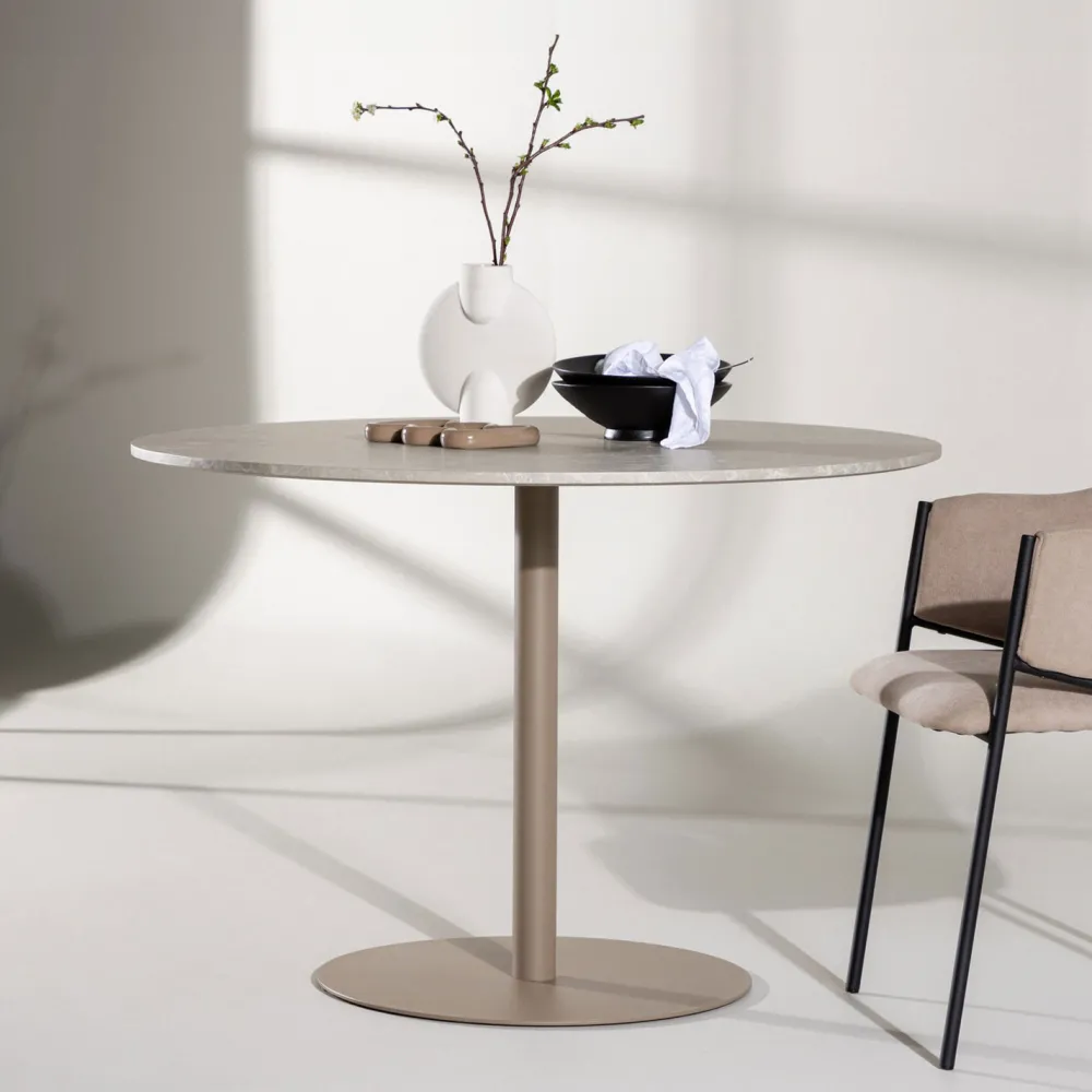 Ontdek de Tu eettafel – een perfecte combinatie van stijl en functionaliteit. De Tu eettafel is gemaakt van MDF-materiaal met een elegante marmerimitatie en voegt een modern tintje toe aan je eethoek. Met een diameter van 110 cm biedt de Tu tafel veel ruimte voor diners en sociale bijeenkomsten.