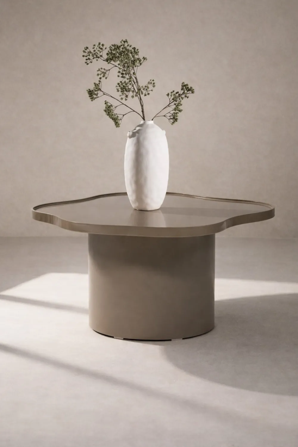 Ilene is een moderne salontafel met een glanzend bruin oppervlak en een zacht gevormd tafelblad dat hem een elegante en toch speelse uitstraling geeft. Zijn unieke silhouet zorgt voor een opvallend middelpunt en geeft de kamer extra karakter.
