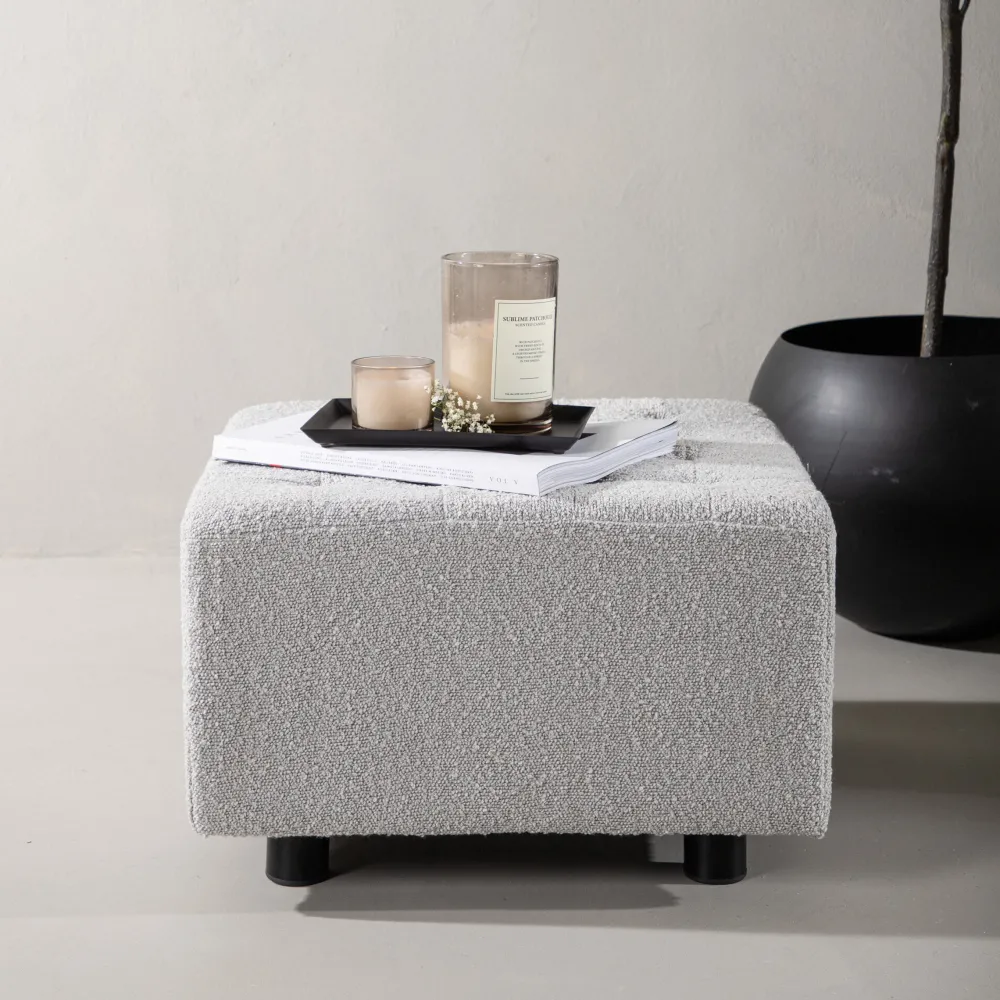 Nohr Poefs & Hockers|Hocker Deniz Bouclé, kleur Lichtgrijs