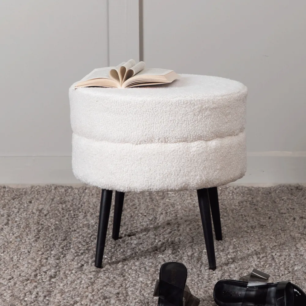 Een eenvoudige en discrete poef die ondanks zijn nette formaat indruk maakt met zijn trendy ontwerp en moderne teddystof. Akela is een zitpoef in heerlijke botten -witte kleur gemaakt van de materialen schuim, katoenvezel, stof en gebogen hout. De poten zijn eenvoudig uitlopend in zwart staal en dragen bij aan een luchtig gevoel. Puffs Afmetingen: Hoogte: 40 cm, diameter: 40 cm. Deze zitzak is even praktisch als stijlvol, hij is gemakkelijk te plaatsen en heeft verschillende gebruiksmogelijkheden – leg je voeten neer, bied een extra zitplaats of plaats hem solitair als leuk interieurdetail!