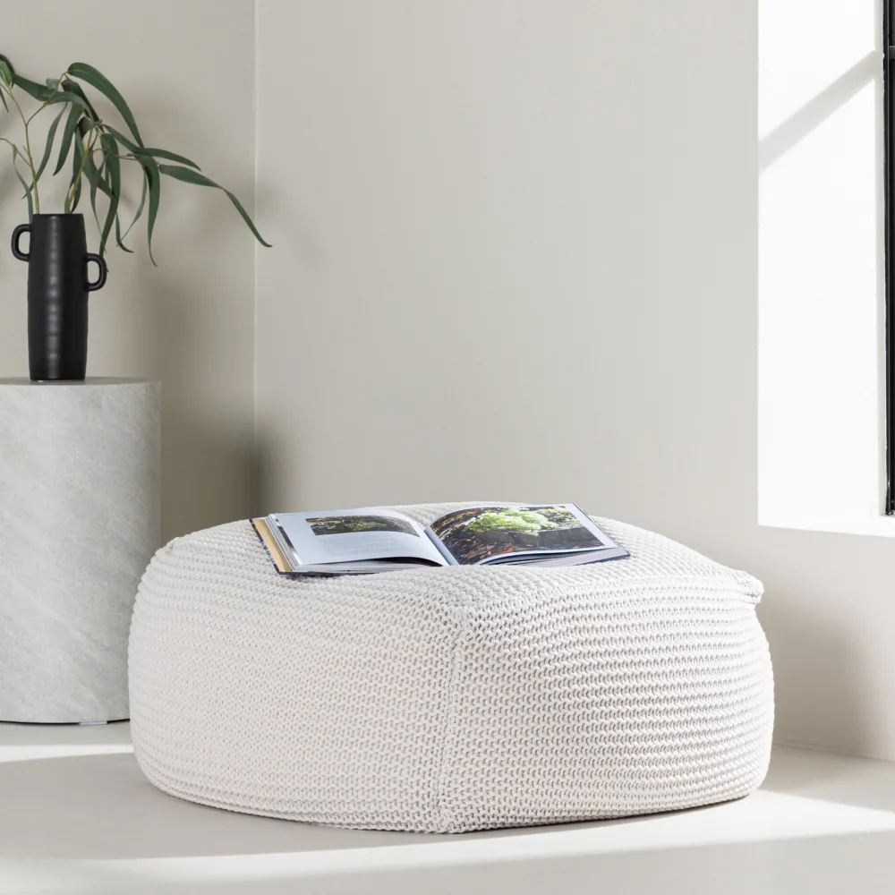 Maak kennis met Keyla – een poef die stijl en comfort op een elegante manier combineert. Met royale afmetingen van 60×60 cm biedt Keyla veel ruimte voor ontspanning en rust. De elegante off-white kleur en het eenvoudige patroon geven hem een tijdloze uitstraling die perfect past in elk interieur.
