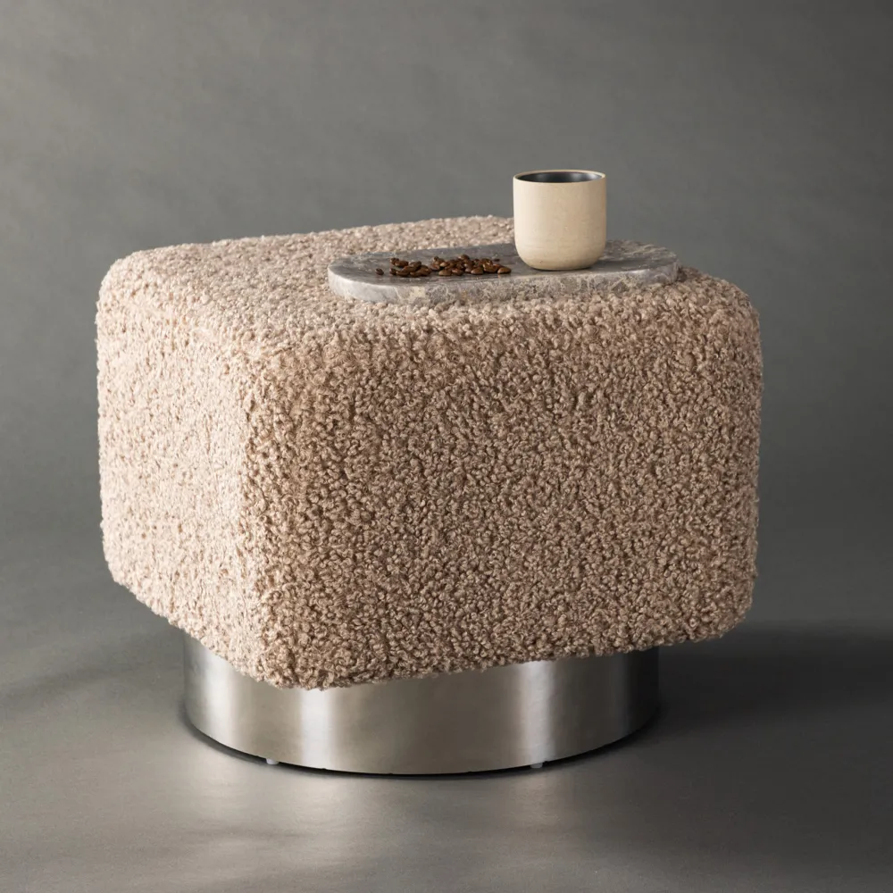 Montey is een prachtige donkergrijze teddy poef die een gezellige sfeer in je kamer zal creëren. Het zachte en knuffelige materiaal maakt hem perfect om op te zitten en te genieten van ontspannende momenten. Het zilveren frame van de poef voegt een uniek en modern tintje toe dat echt opvalt.