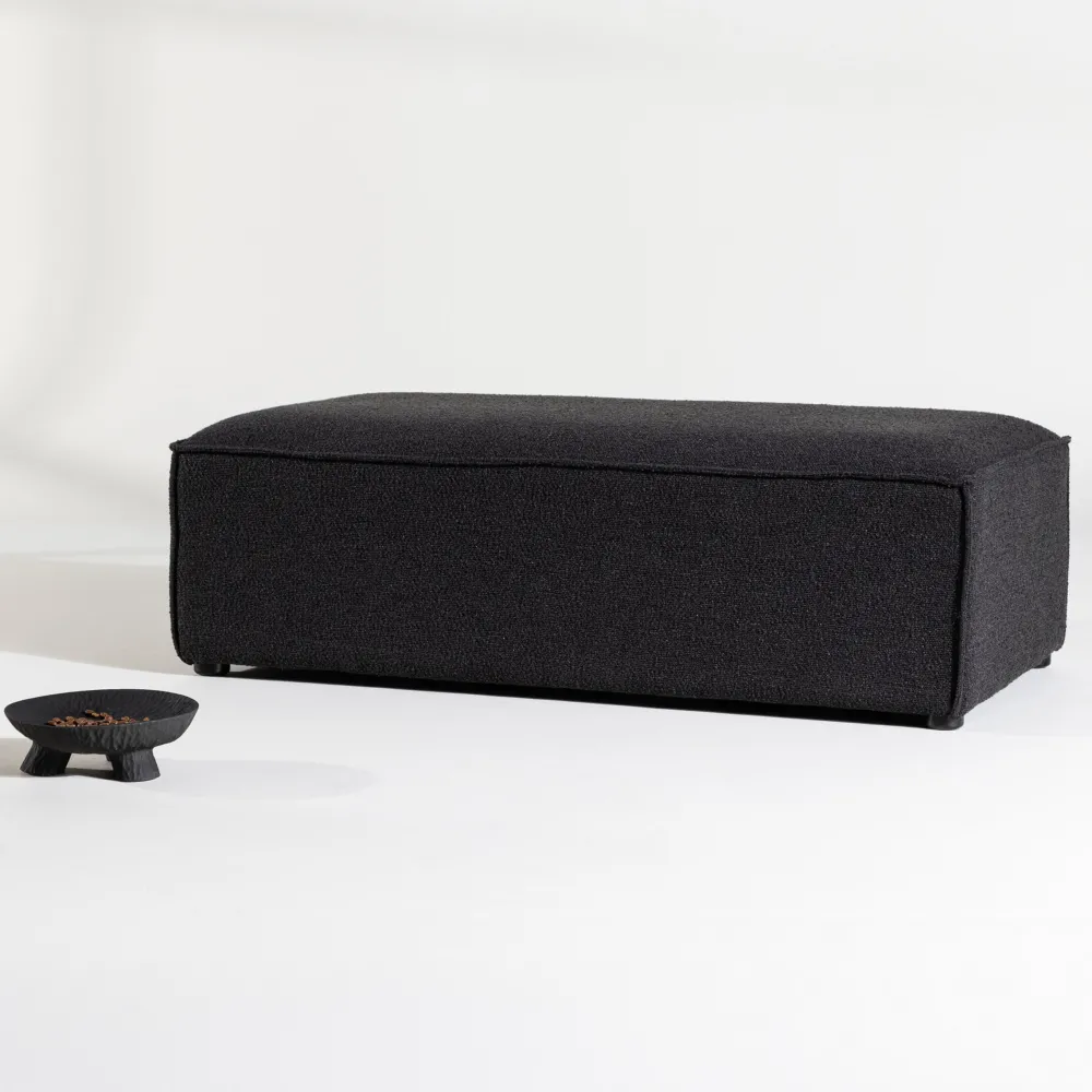Yulonda voetenbank – een ster volgens de laatste trends! Deze stijlvolle voetenbank is de ultieme metgezel van onze geliefde en ruime bank uit dezelfde serie, en samen vormen ze een onverslaanbaar duo dat je woonkamer naar nieuwe hoogten tilt. Met zijn mooie zwarte boucléstof voegt hij een gevoel van mysterie en verfijnde elegantie toe aan elke hoek die hij inneemt. Gebruik hem als extra zitplaats wanneer dat nodig is of als voetenbankje om maximaal te ontspannen. Maar laten we niet vergeten dat deze voetenbank ook een juweeltje op zich is! Afmetingen voetenbank: Breedte: 112cm, Diepte: 60cm, Hoogte: 37cm.