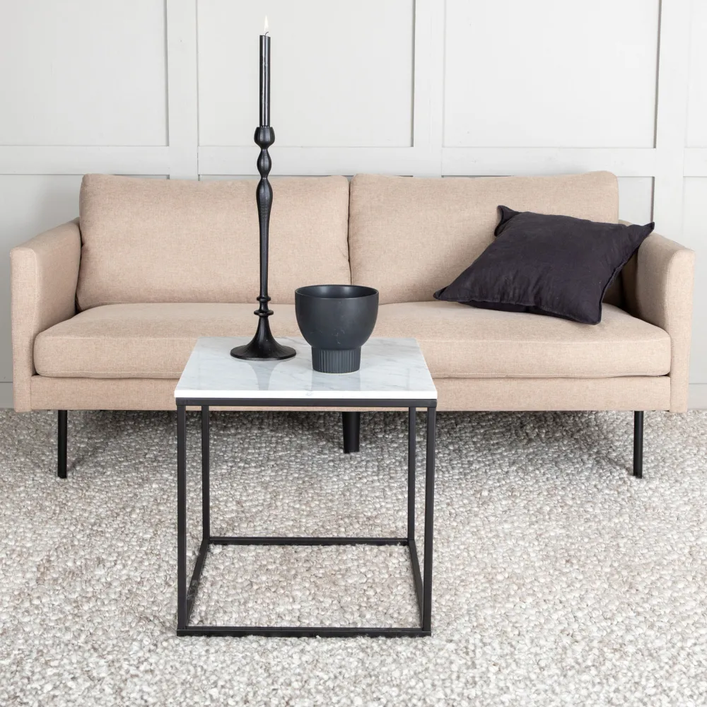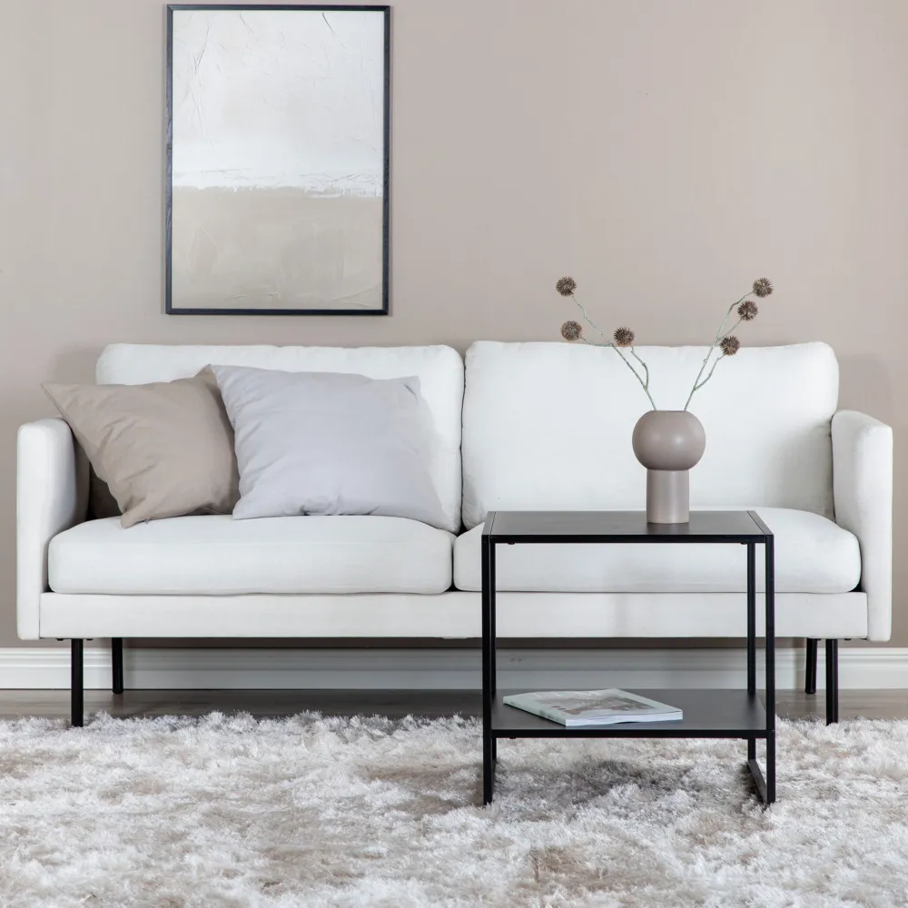 De bank Bladimir combineert strak Scandinavisch design met zachte vormen en een hoog zitcomfort – wat wil je nog meer? Richt de woonkamer in met deze uitnodigende 2-zitsbank en creëer een moderne blikvanger. Gemaakt van beige stof en stijlvolle smalle, zwart metalen poten die de bank een elegante hoogte geven. Zak onderuit na een lange dag en geniet van een comfortabele en stijlvolle bank die gemakkelijk te combineren is met andere inrichtingen! Afmetingen bank: Breedte: 181 cm, diepte: 54 cm, hoogte: 80 cm.