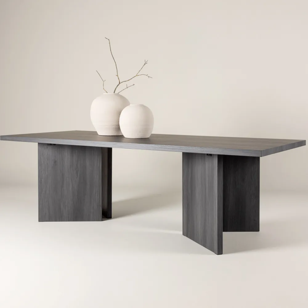 Ontdek Navarro – de robuuste eettafel die een opvallend detail wordt in je interieur. Deze tafel is gemaakt van zwart MDF-materiaal en heeft royale afmetingen van 240×100 cm, waardoor er genoeg ruimte is voor gezellige etentjes en momenten met familie en vrienden.