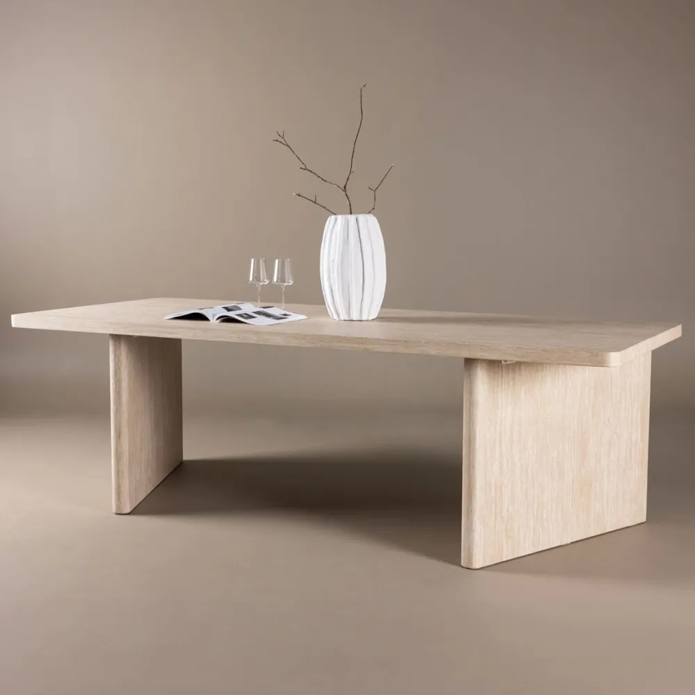 Het product is FSC®-gecertificeerd (FSC®C177288), wat betekent dat het bestaat uit hout uit verantwoorde bosbouw, bosbouw die rekening houdt met mens en milieu. Ontdek de perfecte aanvulling voor je eetkamer met de Stephanie eettafel, gemaakt van MDF en bekleed met een elegante beige kleur. Met zijn indrukwekkende afmetingen van 240×100 cm biedt deze eettafel zowel royale ruimte als een geraffineerd ontwerp dat je huis naar nieuwe hoogten tilt. De beige MDF constructie geeft de tafel een warme en uitnodigende uitstraling die een harmonieuze sfeer creëert in je eetkamer. Het gladde oppervlak is niet alleen visueel aantrekkelijk maar ook gemakkelijk schoon te maken en te onderhouden, waardoor de tafel ideaal is voor dagelijks gebruik en voor feestelijke gelegenheden. De neutrale beige tint kan gemakkelijk worden geïntegreerd met verschillende interieurstijlen en kleurenschema’s, waardoor je eetkamer een tijdloze elegantie krijgt. De Stephanie eettafel heeft een robuust en stabiel ontwerp dat ervoor zorgt dat hij stevig staat, zelfs tijdens levendige diners en grote familiebijeenkomsten. Met zijn royale afmetingen van 240×100 cm biedt de tafel comfortabel plaats aan maximaal tien personen, waardoor hij perfect is voor zowel intieme diners als grote feesten. De rechthoekige vorm biedt een ruim en comfortabel oppervlak voor het serveren van alledaagse diners tot uitgebreide feestmaaltijden. Dit maakt de Stephanie eettafel een uitstekende keuze voor wie zowel functionaliteit als stijl belangrijk vindt. Laat de Stephanie eettafel het hart van je huis worden, waar stijl en comfort samenkomen om een uitnodigende en gezellige omgeving te creëren. Met zijn elegante beige afwerking en praktische formaat is deze eettafel de perfecte keuze voor het creëren van memorabele momenten met familie en vrienden, en voor het genieten van de gemeenschap rond een mooi en functioneel meubelstuk.