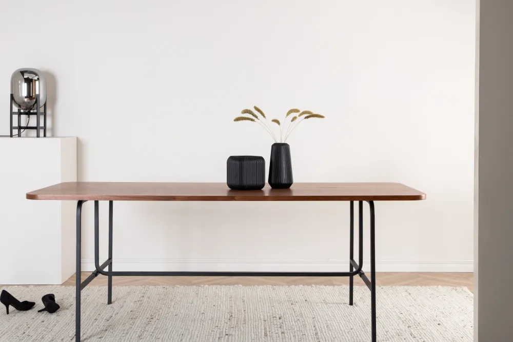 Mooi, modern en tijdloos – creëer een blikvanger die indruk maakt! Onze rechthoekige eettafel Tramel heeft een stijlvol ontwerp met een zwart bovenblad van MDF met zacht afgeronde tafelranden en een decoratief smal onderstel van zwart metaal dat een luchtig gevoel geeft aan de kamer. Hier haal je een charmant middelpunt in huis om geliefden rond te verzamelen!