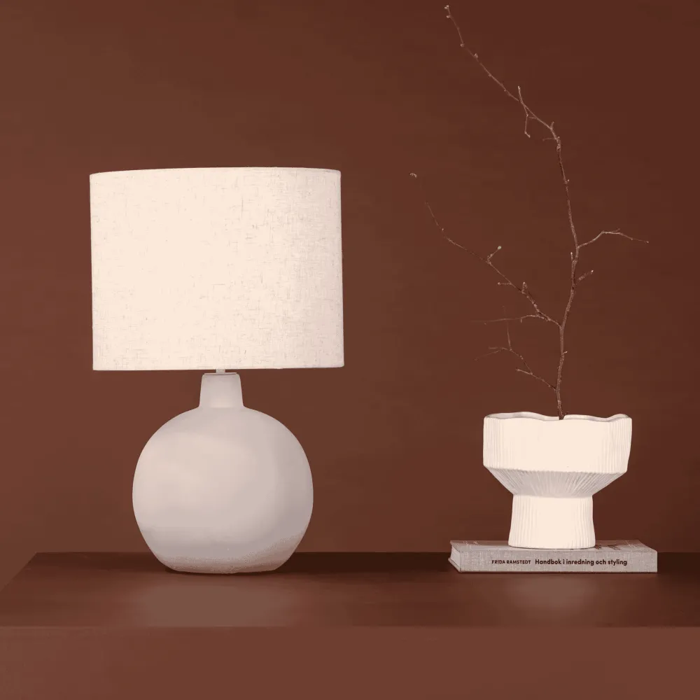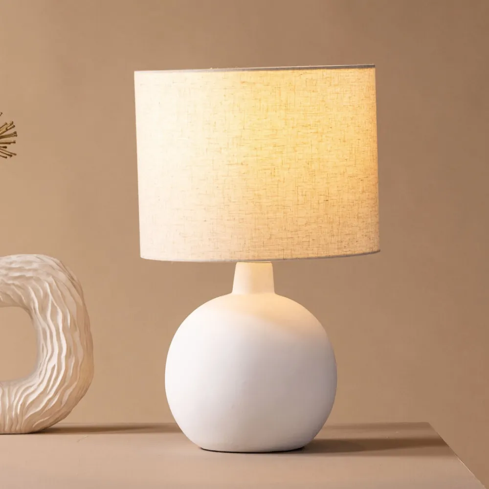 Dhara is een klassieke en tijdloze tafellamp die goed past in de meeste huizen en interieurstijlen! De lampvoet heeft een ronde vorm en is gemaakt van wit beton, wat perfect past bij de beige lampenkap van linnen stof. De lamp heeft een strak en eenvoudig ontwerp dat bijna overal geplaatst kan worden waar extra verlichting of decoratie nodig is. Afmetingen: 51x32x32.