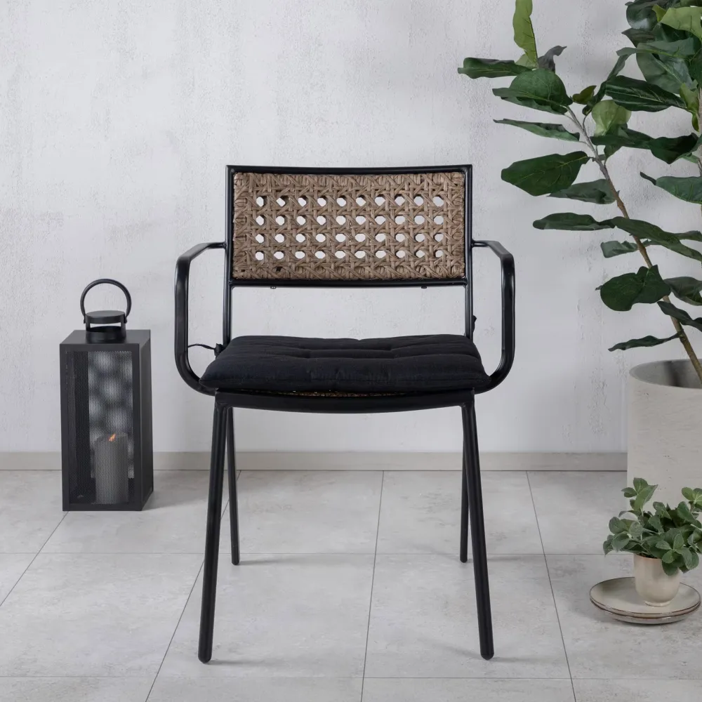 Leontyne eetkamerstoel is een perfecte mix tussen decoratief hout en stijlvolle zwarte kleur. De fijne contrasten tussen de kleuren creëren een harmonieus gevoel in de buitenruimte! Hier krijg je een stoel waarmee je gemakkelijk charmante buitenomgevingen kunt creëren. De stoel is stapelbaar.