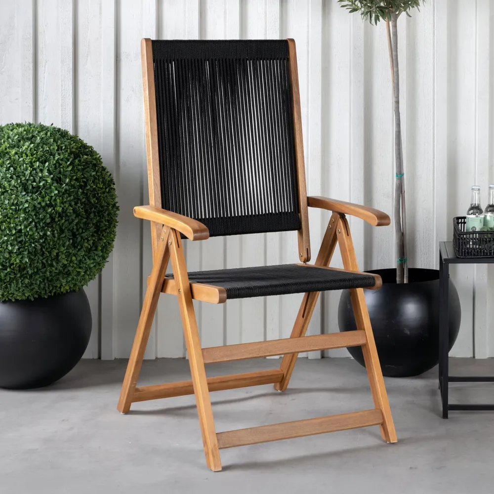 Zwarte kleur ontmoet klassiek hout – een perfecte combinatie! Shaelynn is een eetkamerstoel voor iedereen – comfortabel, stijlvol en praktisch. Een verstelbare stoel met opklapbare rugleuning voor optimaal comfort. Leun deze zomer achterover en geniet van gezellige maaltijden.