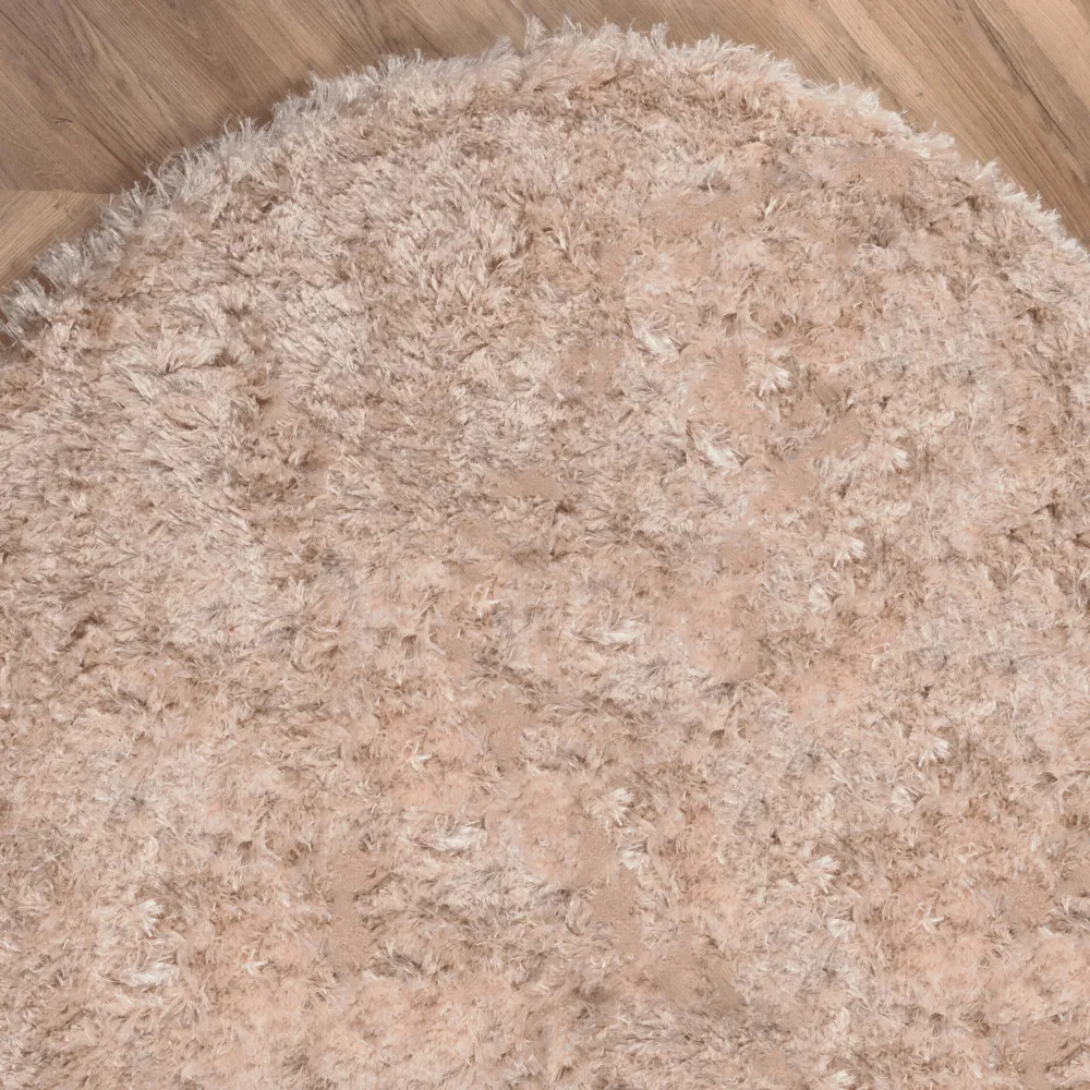 Fluffy champagnekleurige polyester mat met zijdezacht gevoel! Deze ronde schoonheid maakt deel uit van de Kawanda mat, d…