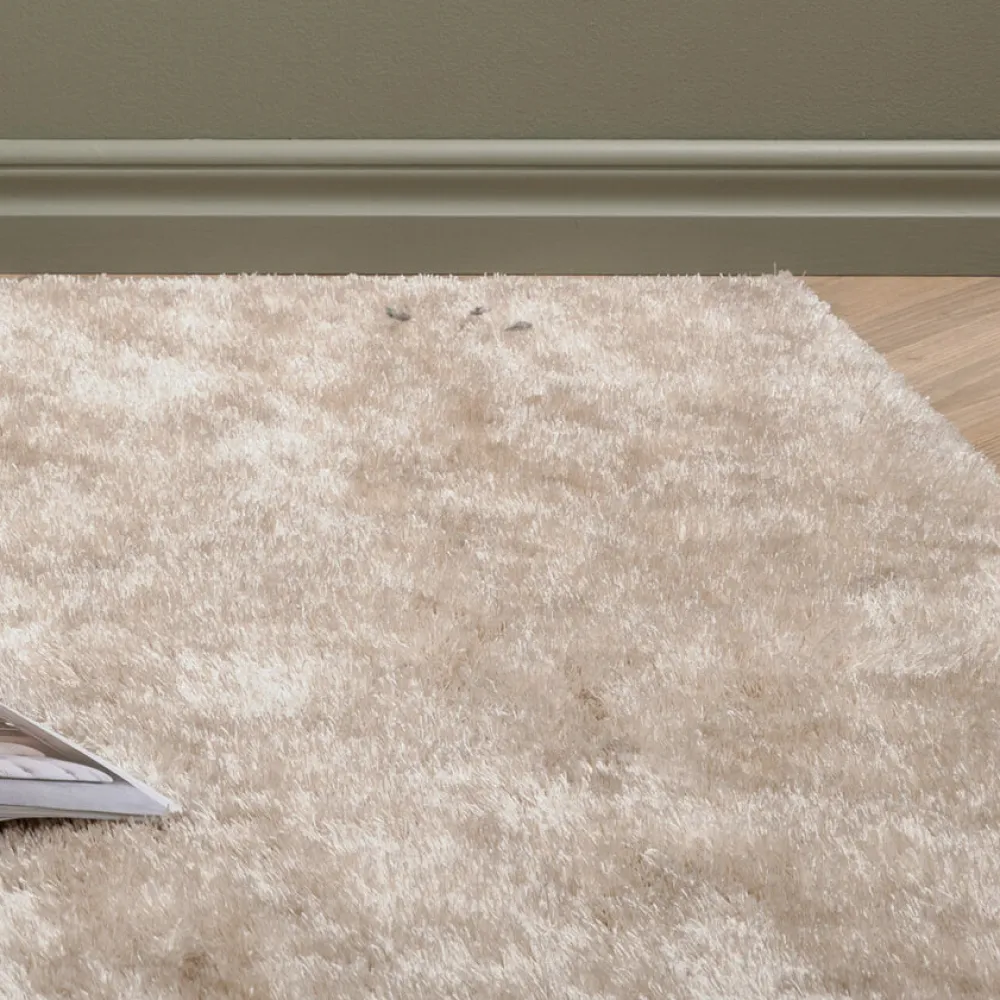 Het vloerkleed Der van Nohr in beige is zacht en luxueus, met een subtiele glans die meeverandert met de lichtval. Dit z…